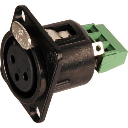 Manufactured with Neutrik components, these 3-Pin chassis mount models eliminate soldering for quick installs in the field and studio. "D-L-1" footprint. Black chrome shell with gold contacts. Mounts from front or back. <b>Rear SCREW</b> terminal model accepts 16 AWG to 30 AWG size wire and terminates with any miniature flathead screwdriver.</p>