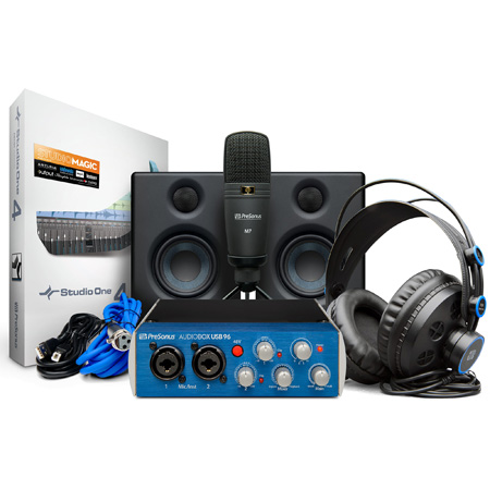 <strong>Everything you need to record and produce-and beyond</strong><br />Produce and record like a pro with a single-purchase of the PreSonus <b>AudioBox Studio Ultimate Bundle</b>! The core of this package is the AudioBox USB® 96 audio/MIDI interface and award-winning Studio One recording and production software. You also get PreSonus®' best-selling Eris E3.5 Active Media Reference Monitors and HD7 headphones, allowing you to monitor your work loud and proud or quietly to yourself. Lastly, the M7 dynamic microphone is a superior all-purpose condenser mic ideal for guitar and vocals-and we even included all the necessary cables and a desktop mic stand.</p><p><strong>AudioBox USB 96: Simple, reliable, and portable.</strong><br />The AudioBox USB 96 is the heart of the AudioBox Studio Ultimate Bundle. This simple, handy little audio/MIDI interface has just the right features for basic recording needs, including two combo mic/instrument inputs and zero-latency monitoring, so you can simply plug in and start recording right away.</p><p><strong>Sound you can trust. Eris 3.5</strong><br />PreSonus® Eris-series studio monitors are used worldwide by audio engineers who need to hear every detail of their recordings. Eris E3.5 employs the same technology as the larger Eris models to deliver studio-quality sound, with a smooth and accurate frequency response. They're compact enough to fit almost anywhere, but still offer robust I/O-you can connect them to nearly anything.</p><p><strong>Capture every nuance with the M7 condenser microphone.</strong><br />Get your mic collection off to a good start with the M7 large-diaphragm condenser microphone and desktop stand. Condenser mics are the overwhelming choice of recording studio professionals, enabling you to capture musical details, harmonics, and subtle nuances that would get lost with dynamic mics. Large-diaphragm condenser microphones, like the M7, tend to "warm up" a sound, making them the go-to microphone for recording vocals and a wide range of instruments.</p><p><strong>Hear every detail with HD7 professional headphones.</strong><br />PreSonus' high-definition HD7 headphones take advantage of a patented, semi-open sound chamber to deliver exceptionally deep low frequencies with a balanced and yet powerful bass punch. Accurate midrange and extended treble response let you pick out the fine details of a mix or track.</p>