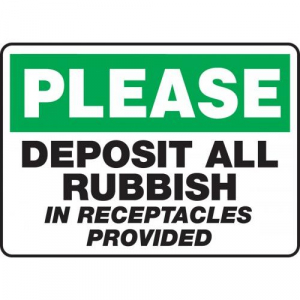 Please Deposit All Rubbish In Receptacles Provided 10" x 14" - MHSK900XL - Jendco Safety Supply