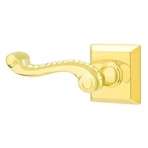 Brass Designer Levers Collection - Half Dummy Left Handed Rope Lever With Quincy Rose in Polished Brass by Emtek - 8531RL.HALF.US3LH | MyKnobs