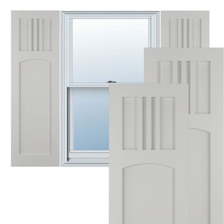 Ekena Millwork 15"W x 62"H True Fit PVC San Miguel Mission Style Fixed Mount Shutters, Hailstorm Gray (Per Pair - Hardware Not Included)