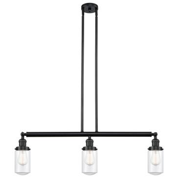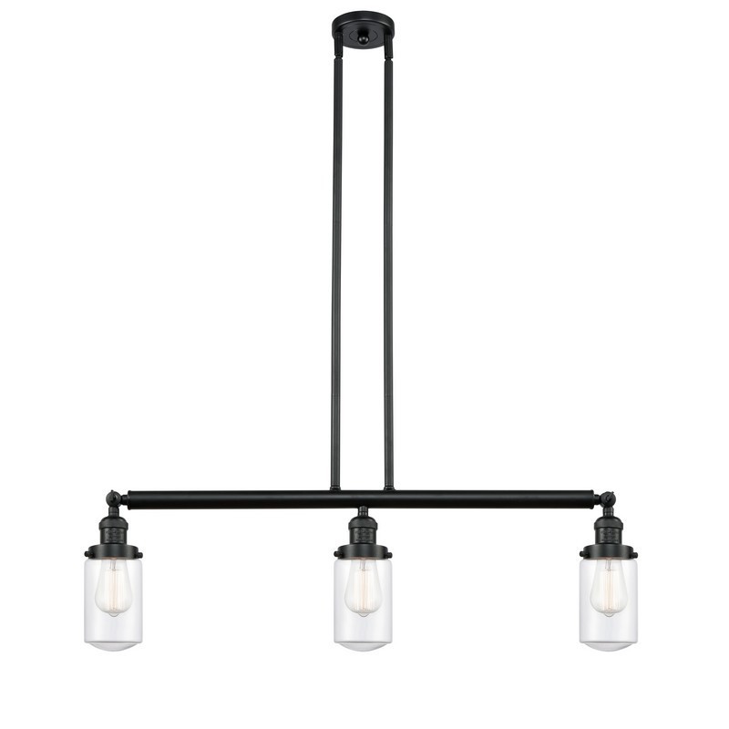 INNOVATIONS LIGHTING 213-BK-G312-LED FRANKLIN RESTORATION DOVER 3 LIGHT 37 INCH CLEAR GLASS ISLAND LIGHT, MATTE...