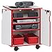 3310JCWW005 Accent Color: Teal Features: -Two matching cubbie trays included to organize smaller parts. -3 Adjustable shelves hold all your presentation equipment. -Top and bottom grommets for tidy cord management. -Post messages and memos on the Write-and-Wipe panel. -Easily roll cart to another room on its caster wheels. -Keep special equipment safe with lockable doors. Product Type: -AV Carts. Commercial Use: -Yes. Primary Material: -Laminate. Shelves Included: -Yes. Casters Included: -Yes. Storage Cabinets Included: -Yes. Number of Shelves: -5. Country of Manufacture: -United States. Dimensions: Overall Width - Side to Side: -24". Overall Depth - Front to Back: -23". Overall Product Weight: -70 lbs. Overall Height - Top to Bottom: -30".
