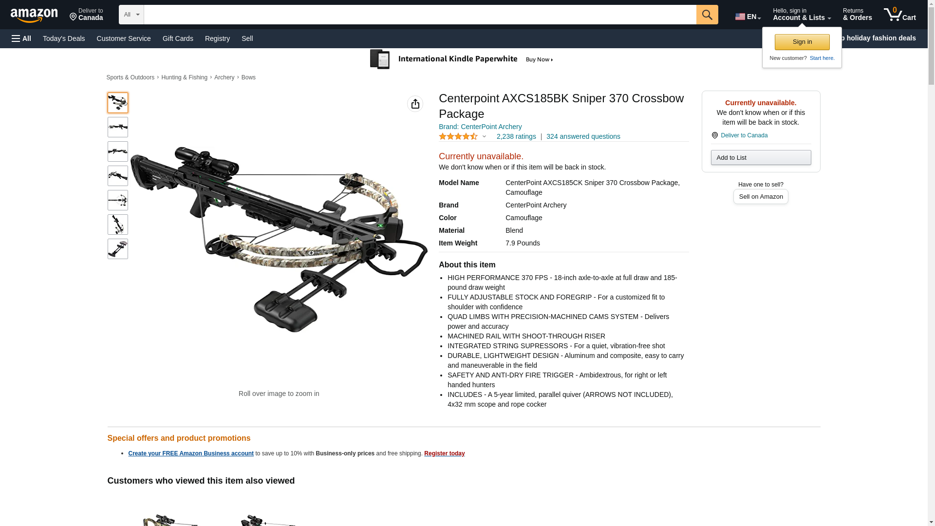 | Feature | 370-Feet per second firing Velocity, 185-pound draw weight |