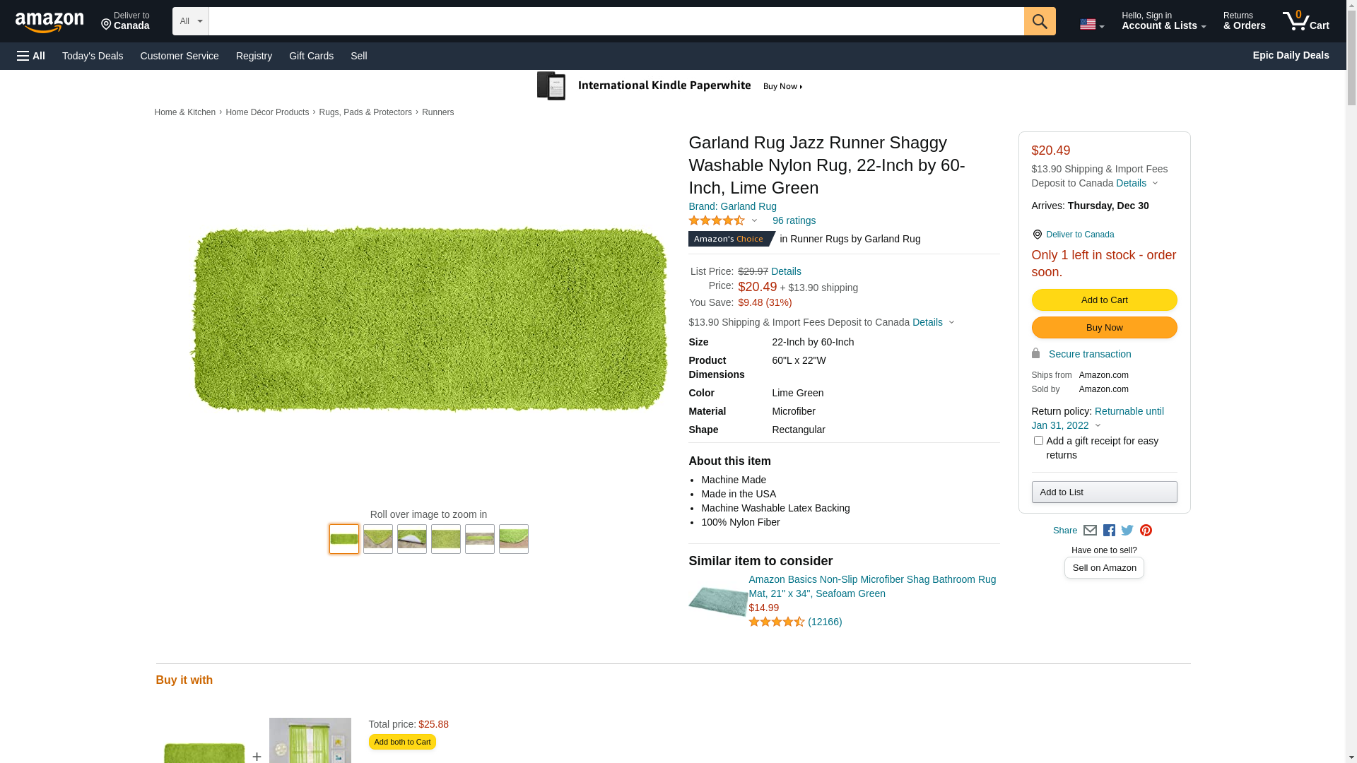 Garland Rug Jazz Runner Shaggy Washable Nylon Rug, 22-Inch by 60-Inch, Lime Green