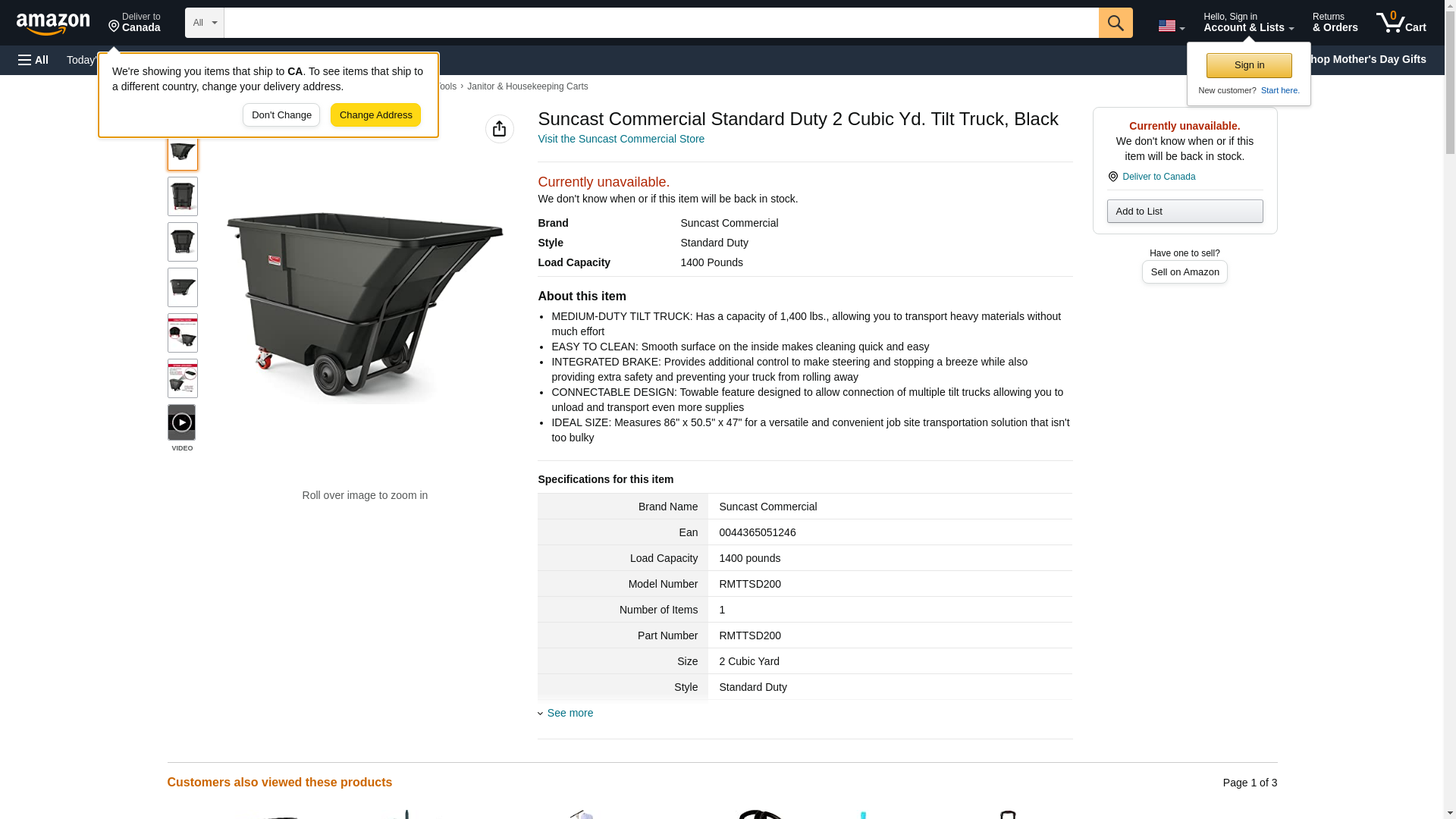 Suncast Commercial RMTTSD200 2.00 Cubic Yard Standard Duty Tilt Truck, Black