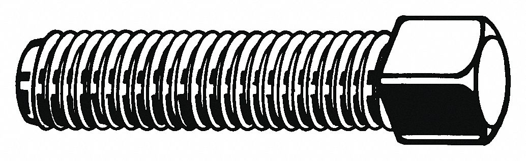 Set Screw, UNC, 1018-1022 Carbon Steel, Finish Plain, Thread Size 7/8-9, Point Type Cup, Point Material 1018/1022 Steel, Drive Type Square Head, Drive Size 7/8 in, Decimal Equivalent 0.875 in, Overall Length 3 in, Point Dia. 0.5156 in, Head Width 0.875 in, Head Height 43/64 in, Class 3A, Rockwell Hardness HR15N 83 Min Surface Hardness, Meets ASME B18.6.2, Package Quantity 50