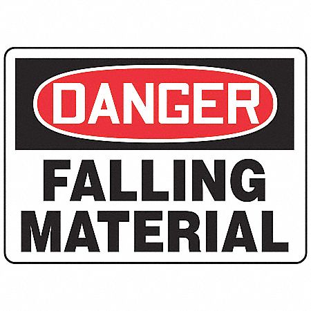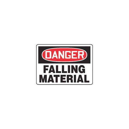 10" x 14" Aluminum OSHA Sign with Legend: "Danger Falling Material" Encourage everyone to look up and be aware that hazards can come from above. Aluminum (VA) Aluminum withstands wash downs, harsh elements, abusive conditions, and features good chemical, abrasion, and impact resistance. Aluminum is excellent for indoor and outdoor usage, making it ideal for a wide variety of industrial-strength applications. All Aluminum signs feature Accuform's TedLex liquid-based UV-protective coating, included at no charge. TedLex is perfect for indoor and outdoor use, prevents fading, and resists chemicals, abuse, and graffiti. Aluminum signs provide the strength of metal, yet never rust. Aluminum withstands wash downs, harsh elements, and abuse.