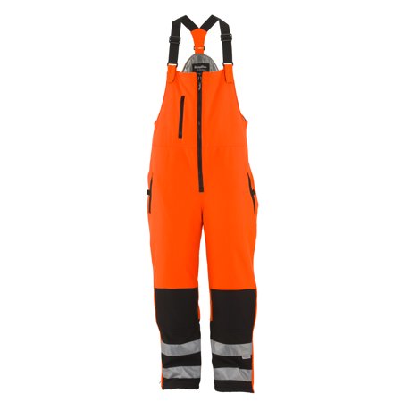 RefrigiWear HiVis Insulated Softshell High Bib, Black/Orange, -10°F Comfort Rating, S