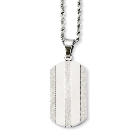 Finish: Polished & Laser Design <li>Chain Length: 22 in</li> <li>Chain Width: 3 mm</li> <li>Charm/Element Length: 45 mm</li> <li>Charm/Element Width: 19 mm</li> <li>Clasp /Connector: Lobster (Fancy)</li> <li>Material: Primary: Stainless Steel</li> <li>Engravable: Yes</li> <li>Product Type: Jewelry</li> <li>Jewelry Type: Necklaces</li> <li>Sold By Unit: Each</li> <li>Necklace Type: Chain with Pendant</li> <li>Bail Width: 5 mm</li> <li>Material: Primary - Color: White</li> <li>Bail Length: 9 mm<br />Chisel Contemporary Metals Jewelry Collection - Sold by Roy Rose Jewelry<br />Polished</li> <li>Engravable</li> <li>Fancy lobster</li> <li>Laser-cut</li> <li>Stainless Steel</li>
