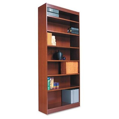 Alera Square Corner Wood Veneer Bookcase, 7-Shelf, 35 5/8w x 11-3/4d x 84h, Mahogany