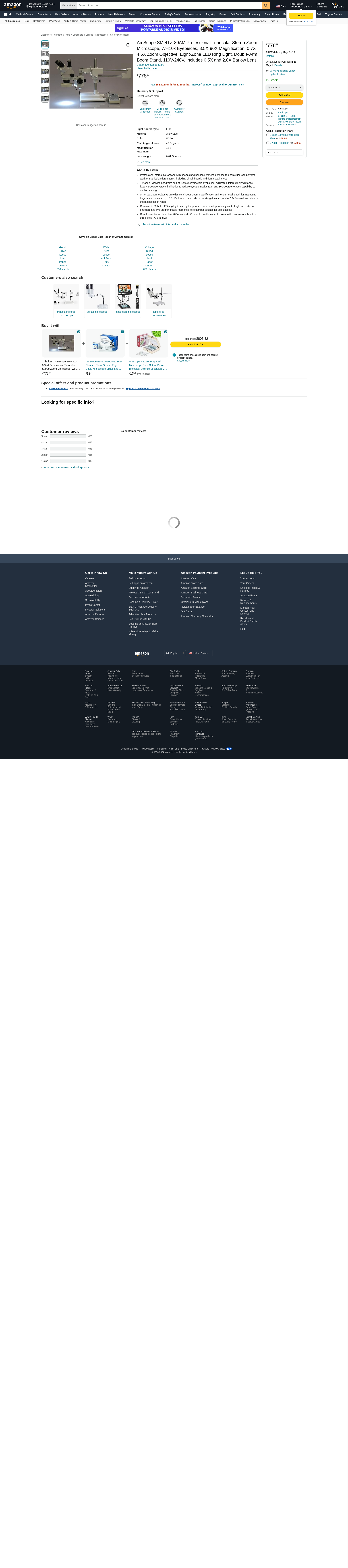 Buy AmScope SM-4TZ-80AM Professional Trinocular Stereo Zoom Microscope, WH10x Eyepieces, 3.5X-90X Magnification, 0.7X-4.5X Zoom Objective, Eight-Zone LED Ring Light, Double-Arm Boom Stand, 110V-240V, Includes 0.5X and 2.0X Barlow Lens: Stereo Microscopes - Amazon.com ? FREE DELIVERY possible on eligible purchases