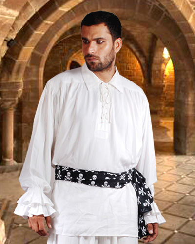 The Pirate Dressing C1007 John Cook Renaissance Shirt, White - Small & Medium