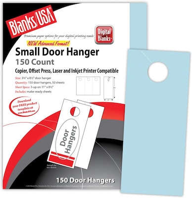 Blanks/USA® 3.67" x 8 1/2" 67 lbs. Digital Bristol Cover Door Hanger, Blue, 50/Pack | Quill.com