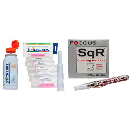 Camplex presents a new cleaning solution kit to insure the integrity and constant flow of your fiber signals with <strong>Expanded Beam</strong> connectors.</p><p>Perfect for precision cleaning of fiber optic connectors, splices and ribbons and end faces of fiber optic connectors. </p><p><strong>Sticklers Splice & Connector Cleaner</strong><br />The new Sticklers Fiber Optic Splice and Connector Cleaner is the only cleaner on the market engineered for fast, reliable and consistent "wet-dry" cleaning. It's been specifically formulated using totally new chemistry to meet the demanding needs of today's gigahertz fiber optic networks.</p><p><strong>Chemtronics Electro-Wash MX Pen</strong><br />The Electro-Wash MX Pen is specifically engineered for the precision cleaning of fiber optic connectors, splices and ribbons. This precision cleaner quickly and safely cleans the end faces of fiber optic connectors, while eliminating electrostatic charge which can attract airborne contaminants to the end face. The MX cleaning formulation is safe on most plastics and is residue-free. The non-pressurized container can be easily transported as a "Dangerous Goods in Excepted Quantity". For best results use the Electro-Wash MX Pen in conjunction with the QbE Cleaning Platform or in the Combined Cleaning Process (CCp).</p><p><strong>Sticklers Clean Stixx</strong><br />The new Sticklers CleanStixx fiber optic cleaning swabs are the best answer for cleaning fiber optic connectors. When used with the new Sticklers Fiber Optic Splice and Connector Cleaner, only CleanStixx can consistently and reliably meet the demanding cleaning performance required on today's gigahertz networks.</p>