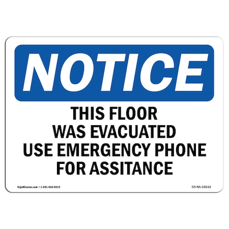 OSHA Notice Sign - This Floor was Evacuated Use Emergency Phone | Vinyl Label Decal | Protect Your Business, Construction Site | Made in The USA