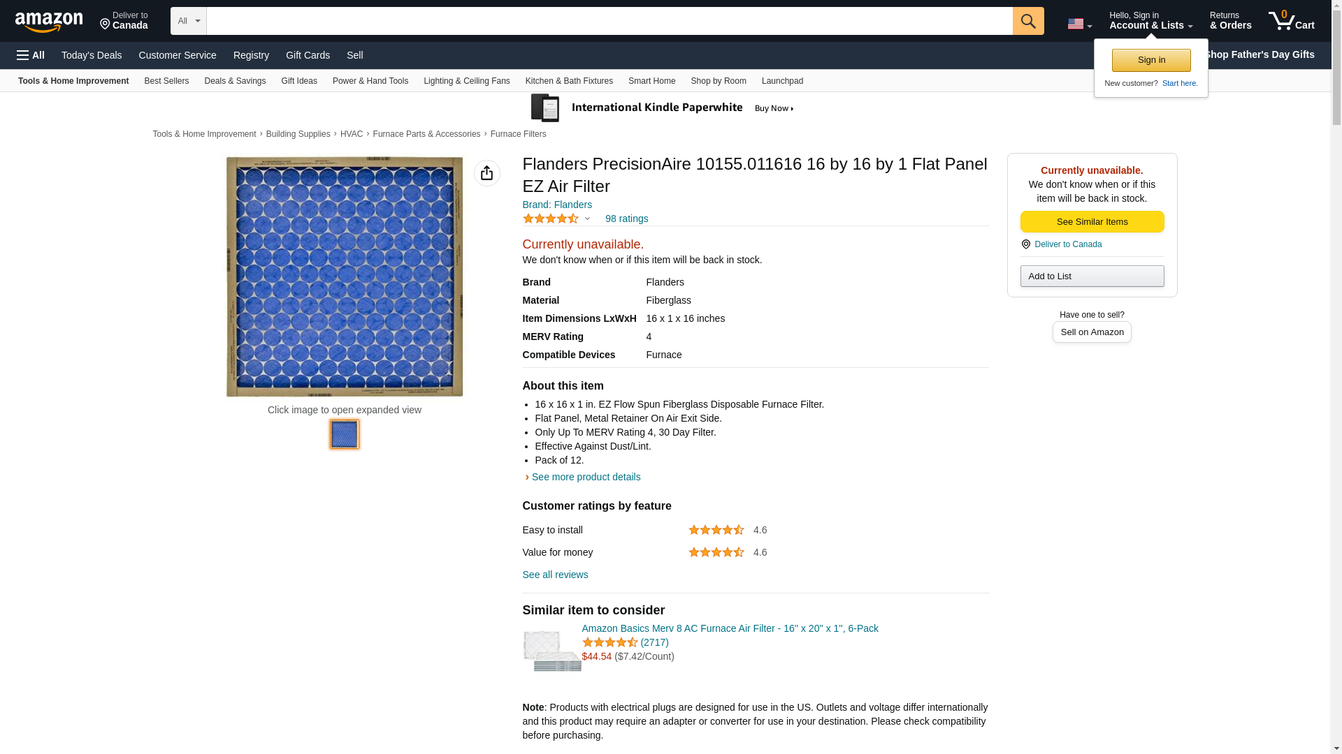 Features. 16 x 16 x 1 in. EZ Flow Spun Fiberglass Disposable Furnace Filter.. Flat Panel Metal Retainer On Air Exit Side.. Only Up To MERV Rating 4 30 Day Filter.. Effective Against DustLint.. Pack of 12.. Dimension - 15.88 x 15.88 x 0.75 in.. Item Weight - 0.34 lbs.