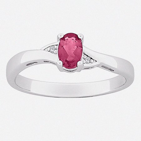 .60 Carat. T.G.W. Created Ruby and Diamond Accent Sterling Silver Ring:.60 ct. t.g.w.Diamond accentsCrafted in sterling silverRuby measures 6mm x 4mmTwo diamonds measure 1mm eachAvailable in full sizes 6-10Learn More<p>Country of Origin: USA or Imported