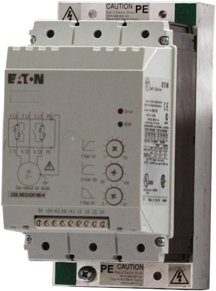 Eaton DS7-340SX016N0-N DS7 Soft Start Controller, 15.2 Amp DS7 Series Soft Start Controller. 15.2 Amp. Motor Voltage: 230V - 460V AC. Control Voltage: 24V AC/DC. Requires: Overload Protection and Panel Mounting Adapter for Overload.