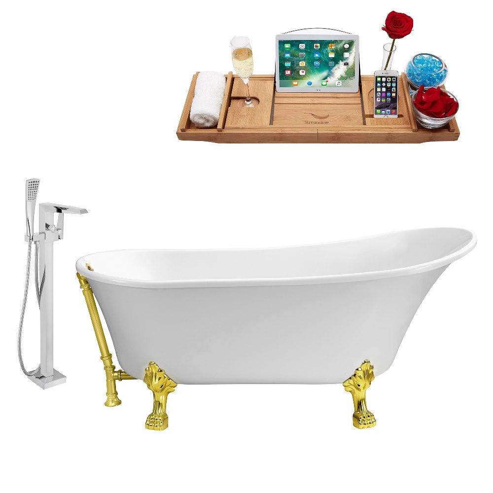 STREAMLINE NH340GLD-GLD-100 67 INCH WHITE CLAWFOOT TUB, TRAY AND FAUCET SET