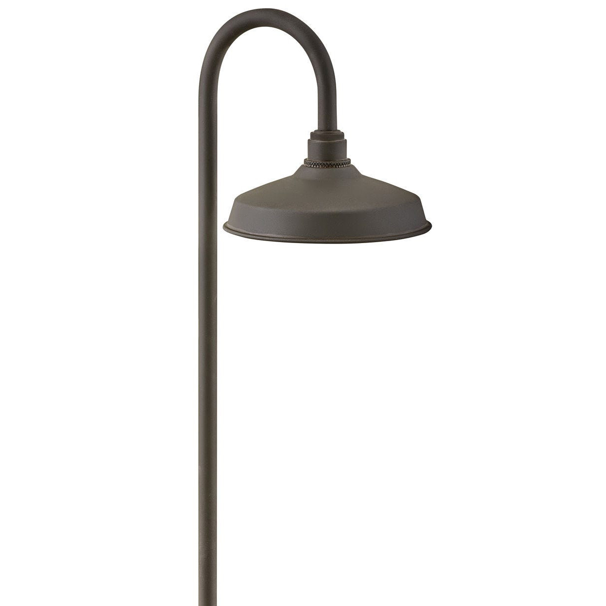 Hinkley Path Lights add impeccable style and safety to walkways and outdoor living environments to create sophisticated curb appeal. Finish: Museum Bronze Width: 7" Height: 22" Material: Composite Transformer Required: Yes Brand: Hinkley Finish: Museum Bronze Width: 7" Height: 22" Light Source: Socketed LED Name: 00T5-27LED-1.5 Voltage: 12v Volt-Amps: 1.8 LED Color Temp: 2700 LED Lumens: 150 Features A wiring kit and ground spike are supplied Suitable for use in wet (outdoor direct rain) locations as defined by NEC and CEC. Meets United States UL Underwriters Laboratories & CSA Canadian Standards Association Product Safety Standards For more information on how to control your landscape lighting via the Hinkley Home Automation App, click here. LED Bulbs carry a 3-year limited warranty Classic lines and heritage details complement traditional architecture Depth: 9 LED CRI: 90 Incandescent Equivalency: 1 x 25w LED Lifespan: 25,000 hrs Dimmable: Yes - MLV On Transformer Primary Leadwire: 1 X 36" Weight: 1.5lb UPC Code: 640665151008 WARNING for California Customers