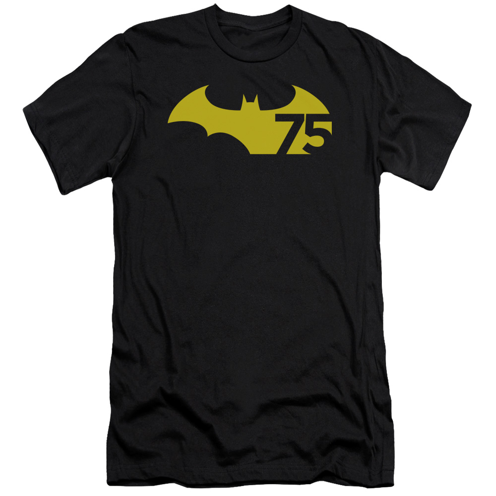 Trevco BM2441-PSF-5 Batman & 75 Logo 2 Adult Cotton Premium Canvas Brand Slim Fit 30-1 T-Shirt, Black - 2X
