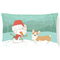 Carolines Treasures CK2060PW1216 Pembroke Corgi Snowman Christmas Canvas Fabric Decorative Pillow
