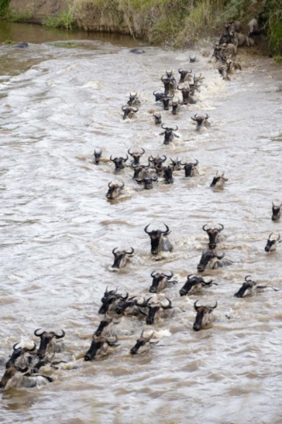 Panoramic Images PPI119462 Wildebeests crossing a river Mara River Masai Mara National Reserve Kenya Poster Print by