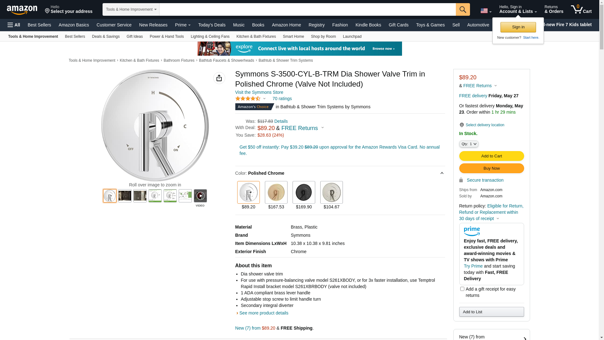 | Feature | Symons D\xeda shower trim with lever handle. Secondary integral volume handle |