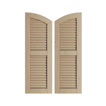 Ekena Millwork SHULVL18X84KPPR (78" Low Side) Timberthane Two Equal Louver w/Elliptical Top Faux Wood Shutters (Per Pair), Primed Tan, 18" W x 84" H