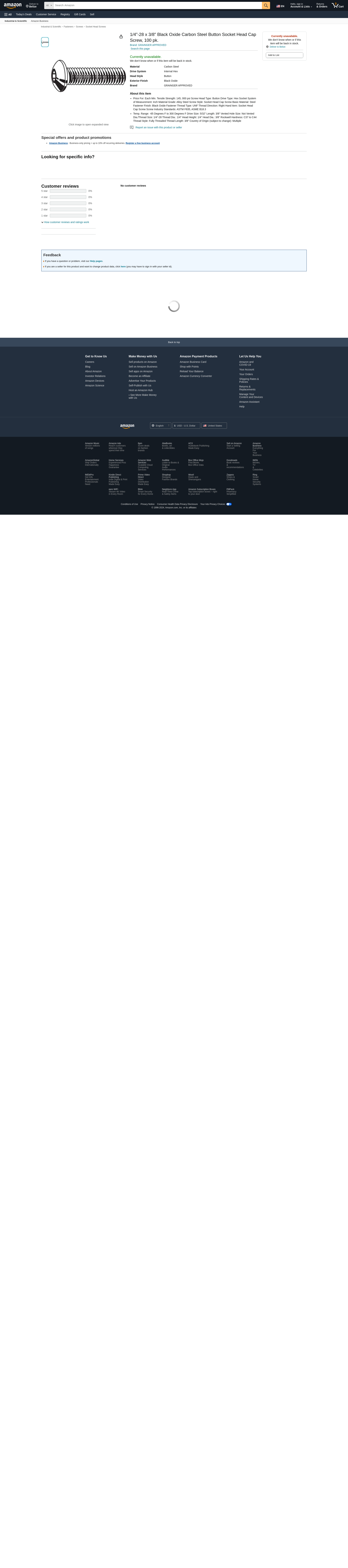 'Socket Head Cap Screw, System of Measurement Inch, Button, Basic Material Steel, Material Grade Alloy Steel, 1/4 In.-28, Length 3/8 In., Fastener Finish Black Oxide, Fastener Thread Type UNF, Drive Type Hex Socket, Drive Size 5/32 In., Thread Style Fully Threaded, Thread Direction Right Hand, Thread Length 3/8 In., Head Height 1/4 In., Thread Dia. 1/4 In., Package Quantity 100'