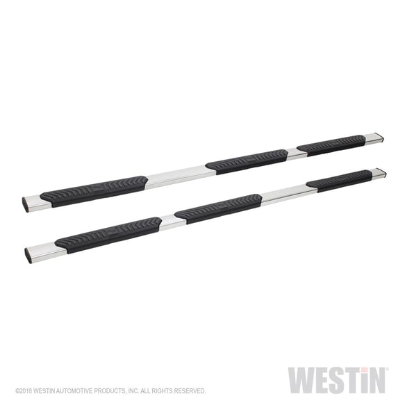 Westin 28-534570 R5 M-Series 5in. Wheel to Wheel Nerf Step Bars fits 2007-2018 Silverado Sierra 1500 Crew Cab 2007-19 2500 3500 Crew Cab (6.5ft Bed, 8ft Dually Bed) Polished Stainless Steel 1 Pair