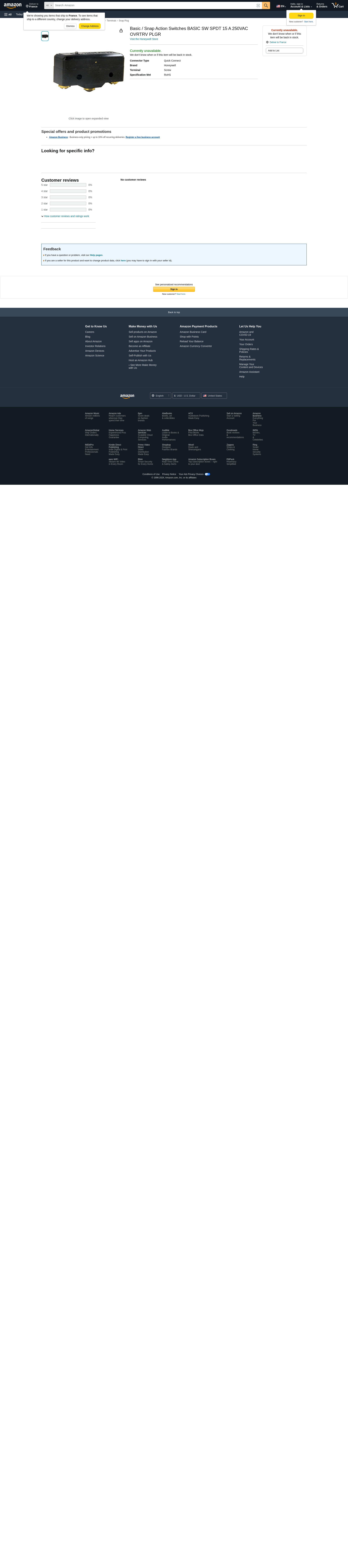 BZ-2RD-D6, Micro Switch Premium Large Basic Switches: BZ Series, Single Pole Double Throw (SPDT), 15 A 125/250 Vac, ENEC 16 A