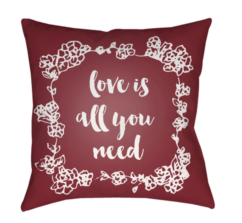 Surya QTE045-1818 Love All You Need Medium Throw Pillow, 18 x 18 x 4 in. - Red & White