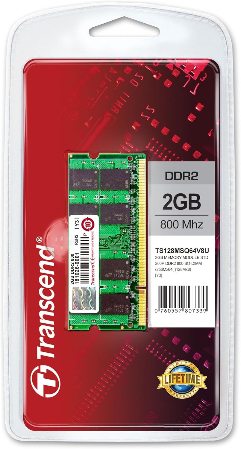 - Transcend 2gb Ddr2 Sdram Memory Module - 2gb (1 X 2gb) - 800mhz Ddr2-800/pc2-6400 - Non-ecc - Ddr2 Sdram - 200-pin Sodimm - Rohs Compliance