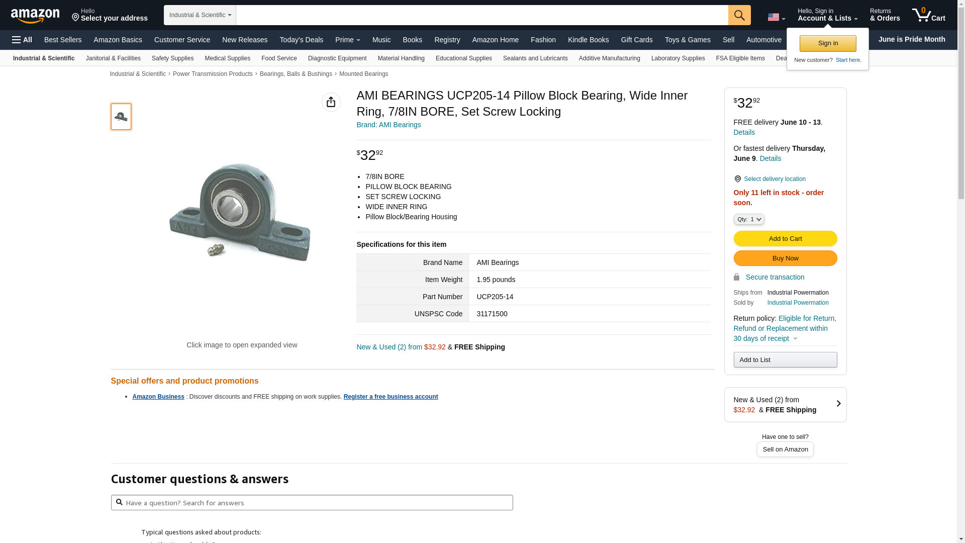 THIS LISTING IS FOR 1 PIECE: UCP205-14 - AMI - 7/8" WIDE SET SCREW PILLOW BLOCK - UPC: 0808250105106 - FACTORY NEW