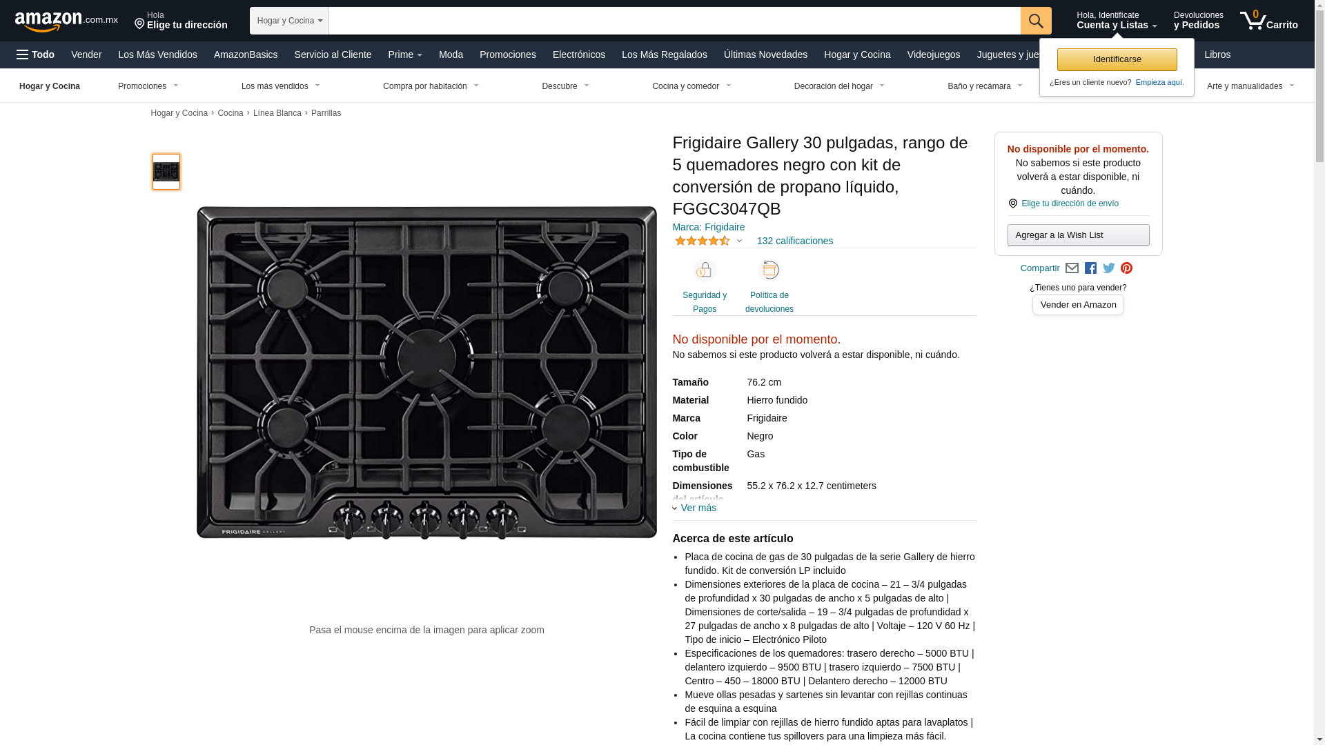 - 30” Gas Cooktop from Gallery Series made of Cast Iron. LP conversion kit included
