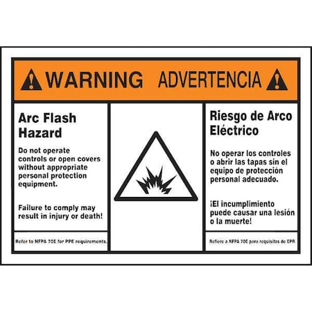 Accuform SBLSPS374 Adhesive Label, Legend "Warning ARC Flash Hazard…", 0.006" Thickness, Dura-Vinyl, 3.5" x 5", Orange/Black on White