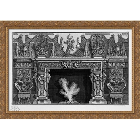 Fireplace with a frieze of armor; heron in a shell at the center between two dragons 40x28 Large Gold Ornate Wood Framed Canvas Art by Giovanni Battista Piranesi