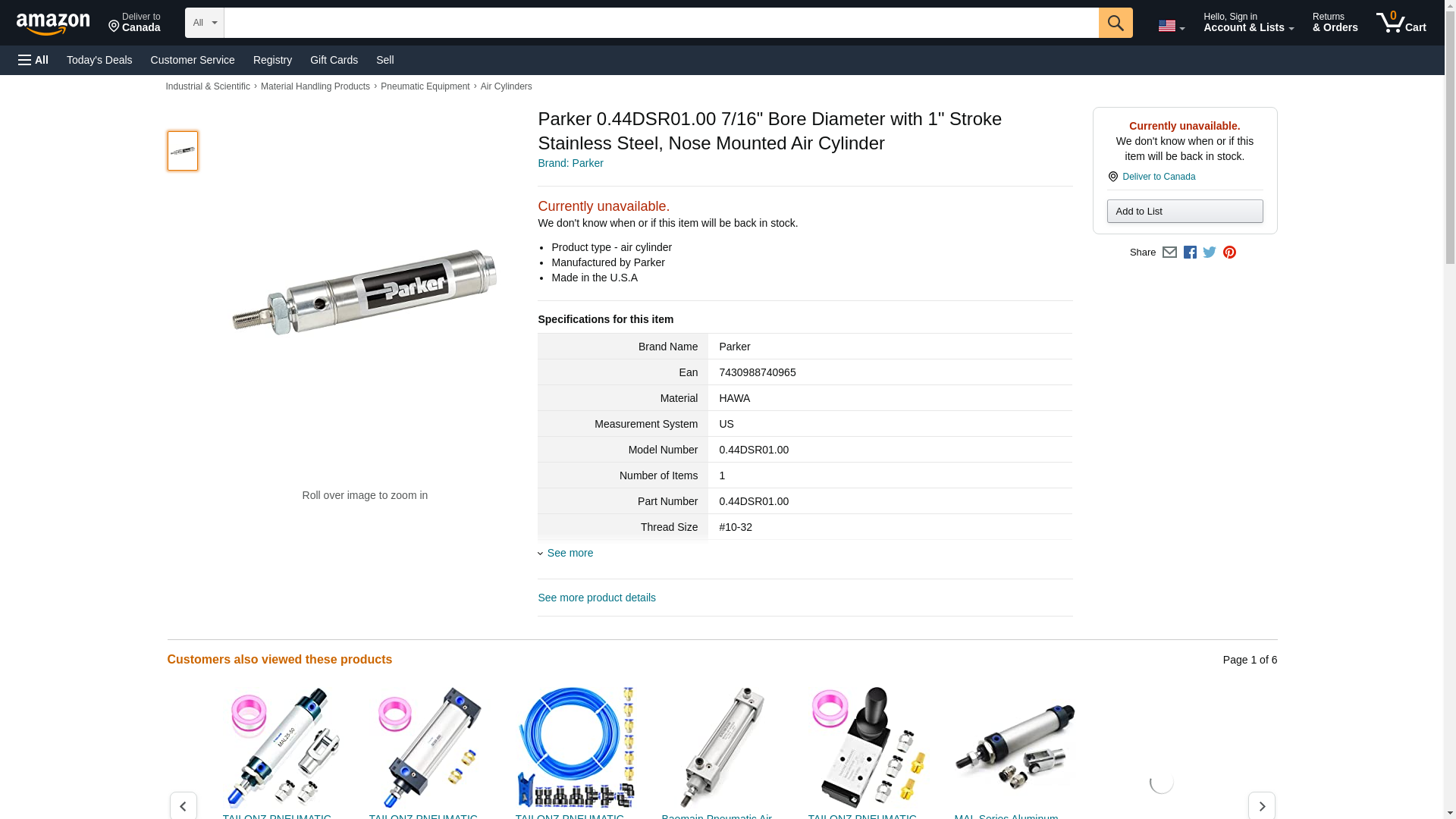Parker 0.44DSR01.00 7/16" Bore Diameter with 1" Stroke Stainless Steel, Nose Mounted Air Cylinder