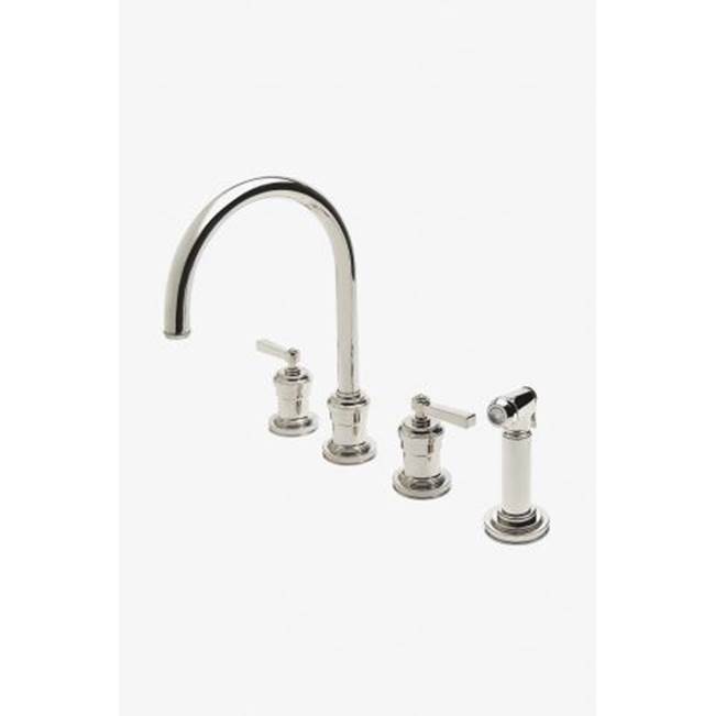 Waterworks - 07-56359-78512 - Aero Three Hole Gooseneck Kitchen Faucet with Elevated Metal Lever Handles and Spray in Gold, 1.75gpm (6.6L/min)