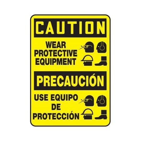 Accuform SBMPPE755XT Spanish Bilingual Legend "Caution WEAR Protective Equipment" Sign, 14" Height, 10" Wide, 14" Length, 0.060" Thickness, Dura-Plastic, Black on Yellow