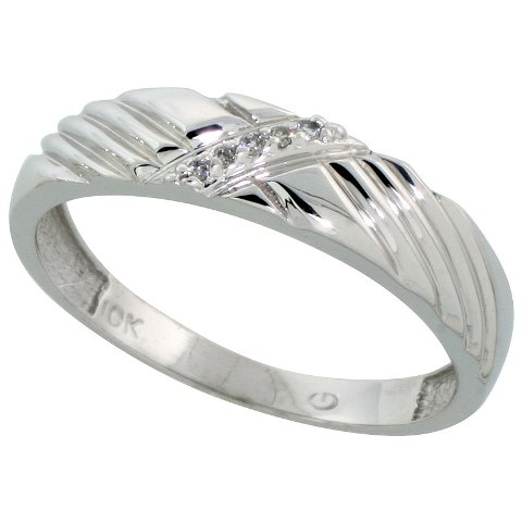 World Jewels 10K White Gold Mens 0.03 Kt. Brilliant Cut Diamond Wedding Ring, Size 13
