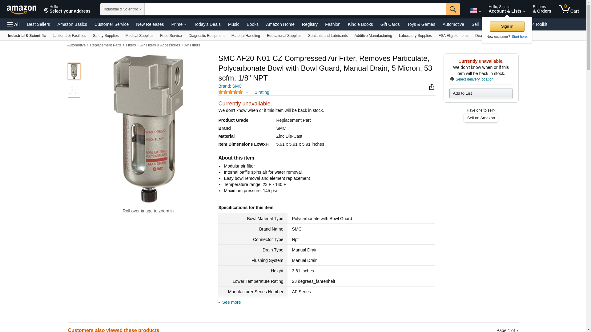| smcpneumatics.com | AF20-N01-CZ | 1 | 1 | 1 @ $19.75 | |