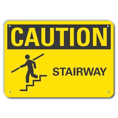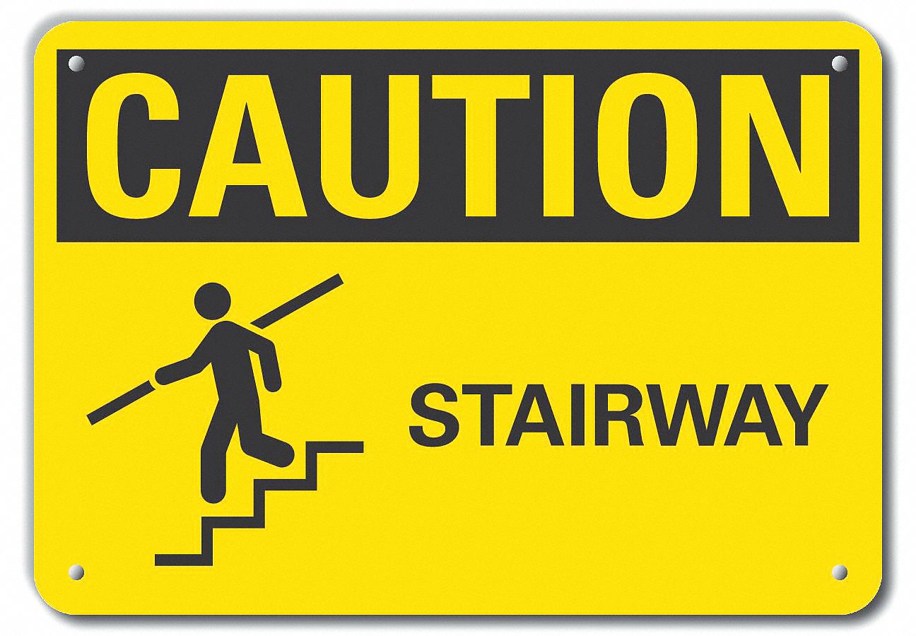 Caution Sign, Vertical Rectangle, Number of Printed Sides 1, English, Sign Legend Stairway, Sign Legend Background Color Yellow, Sign Legend Style Symbol and Text