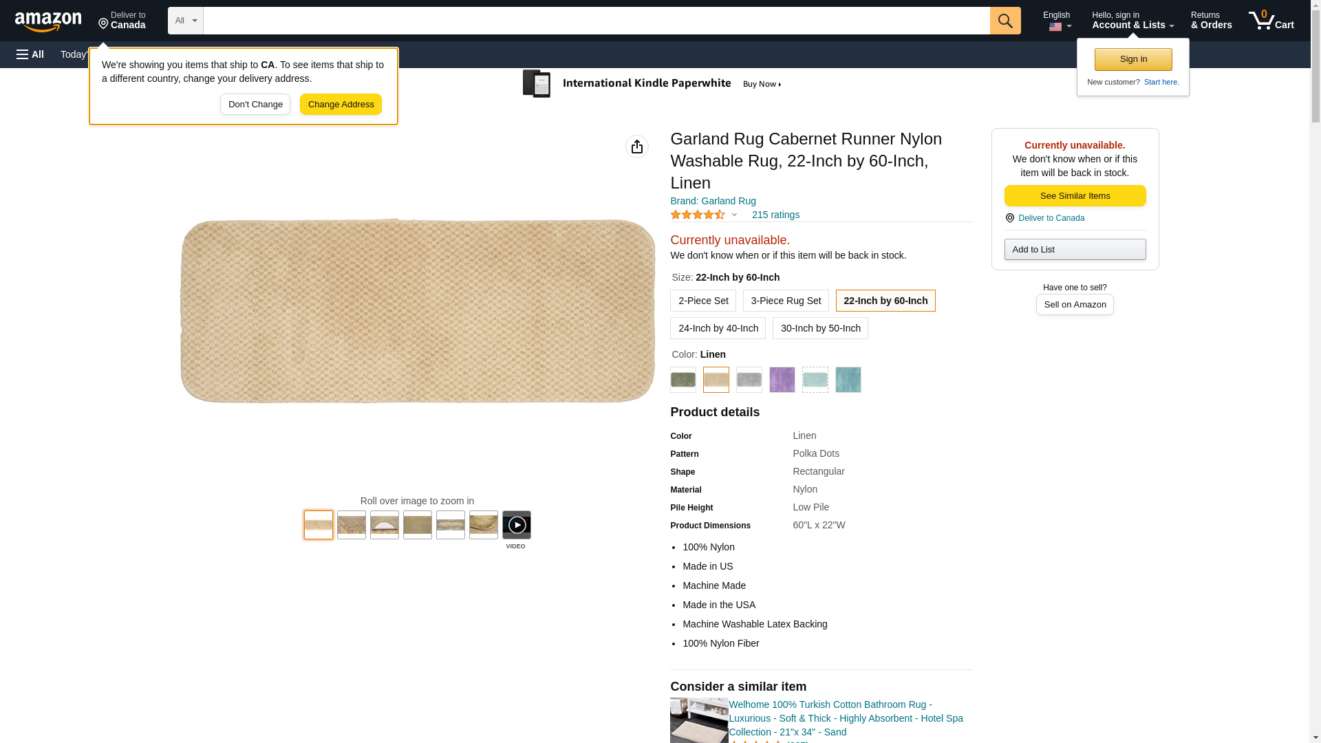 Garland Rug Cabernet Runner Nylon Washable Rug, 22-Inch by 60-Inch, Linen