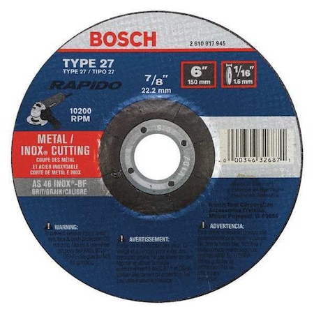 Bosch TCW27S600 6 In. 1/16 In. 7/8 In. Arbor Type 27A (ISO 42) 46 Grit Rapido Fast Metal/Stainless Cutting Abrasive Wheel