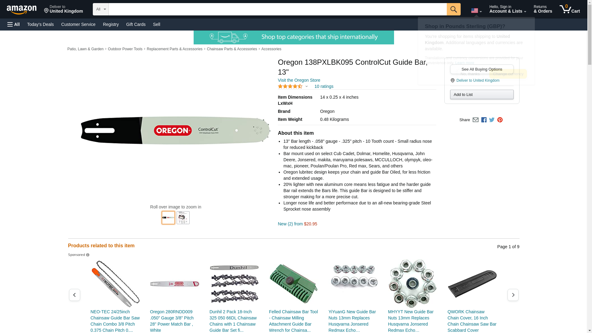 Oregon 10 Pack 138PXLBK095 ControlCut Guide Bar 13"