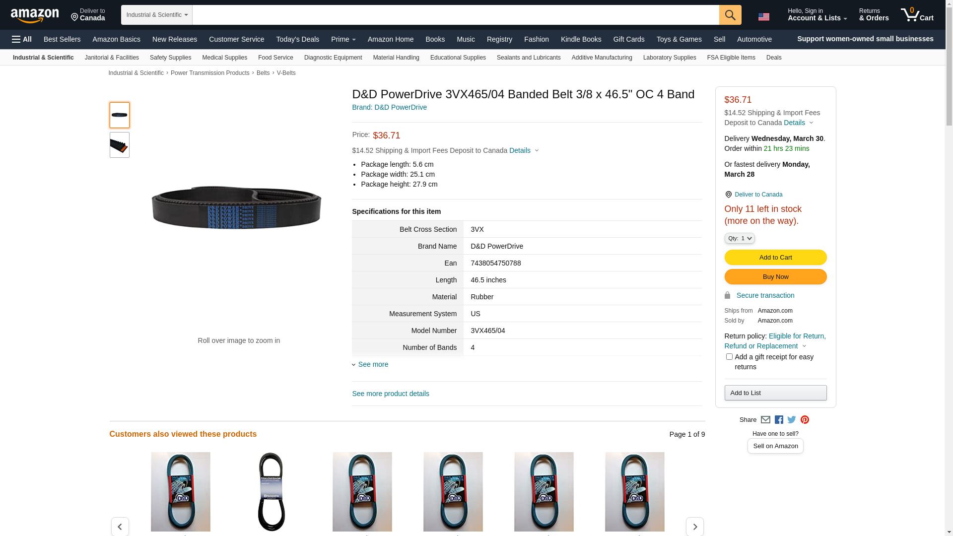 | Feature | Belt 3VX 3/8 x 46.5in OC 4 Band |