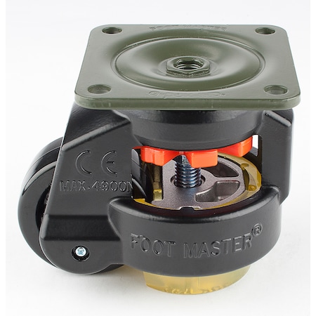 FOOT MASTER GD-80-F-NYN-CUR-FBL Leveling Caster, 63 mm Nylon 66 Wheel, Flat Black, Height Adjustable Foot Pad, Plate Mounted Swivel Caster, 550 kg Load Rating